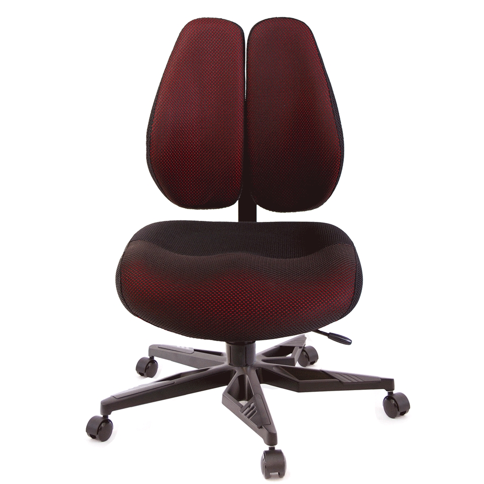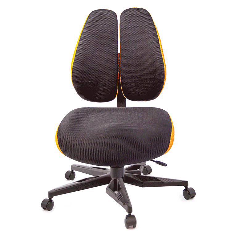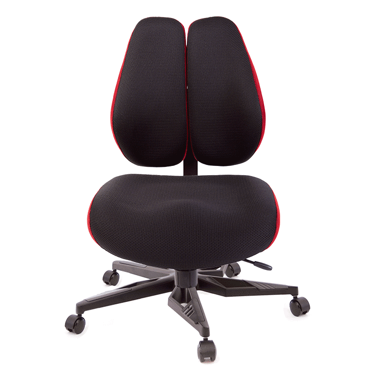 一般的電腦椅,實際上『椅背』大都不能支撐人體腰椎,緣自於人體本身的構造,人體的肩胛骨兩旁延伸至肩膀,其雙肩的壓力,會集中到腰椎中心處形成一個『倒三角的點』,如同一個箭頭向下將壓力壓迫到腰椎,無法讓脊椎肌肉正常釋放重力。 GXG Furniture開發出新式『智慧雙背椅』,提倡健康座、舒適生活,當您坐在一般椅子上,腰椎基本所承受的壓力,是人體自然站立時的140%,而使用『雙背智慧椅』,如同多了一雙手,完整托住您的背部,明顯比一般椅子減輕百分之五十的腰椎壓力,讓腰椎壓力降至75%,改善您長久以來的困擾怎麼坐,都痠痛的問題,能讓您舒適度明顯提升