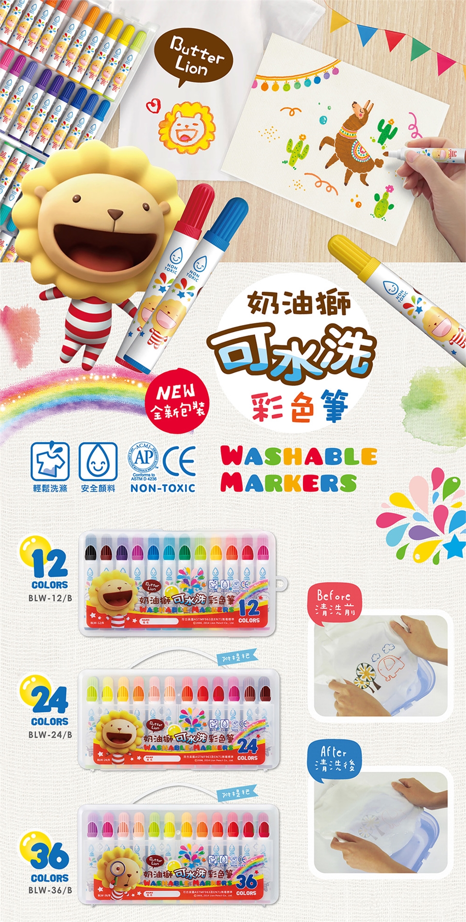 BLW 奶油獅可水洗彩色筆