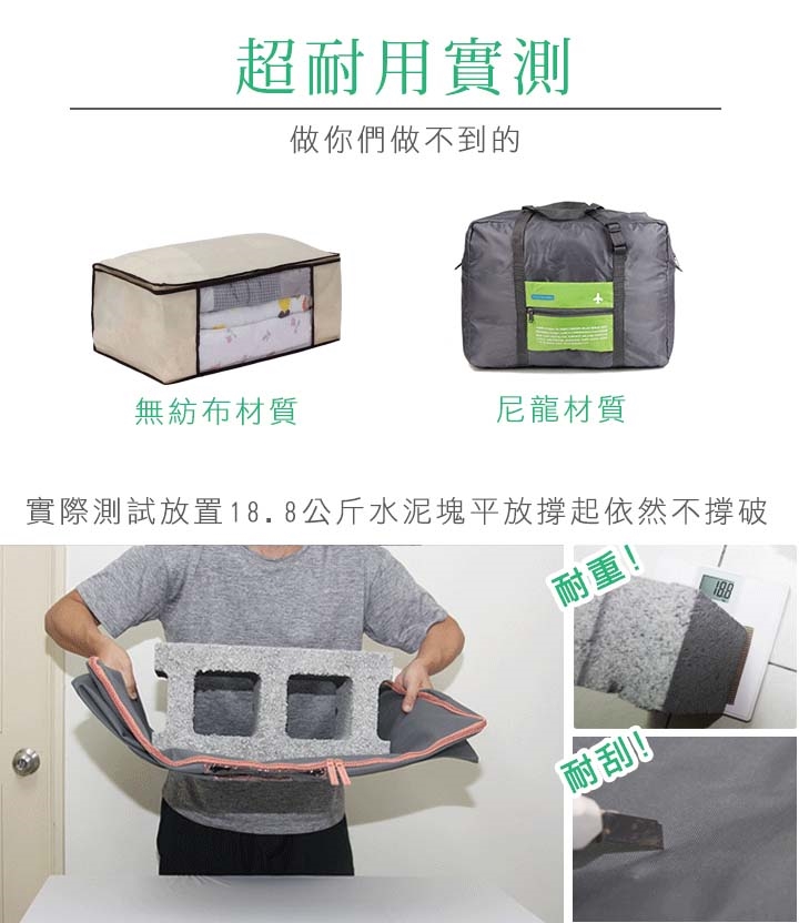 厚重的冬季衣物無處放,使用600D高密度牛津布收納袋,超耐重、耐用、耐磨、耐髒~加大尺寸較市面上超大款還大,讓你輕鬆容納更多織品,透明遮罩袋內物品一目了然,拿取更方便。可水洗防潮又透氣,不必擔心棉被等衣物隨意放置導致受潮,快幫衣物棉被找個家吧!