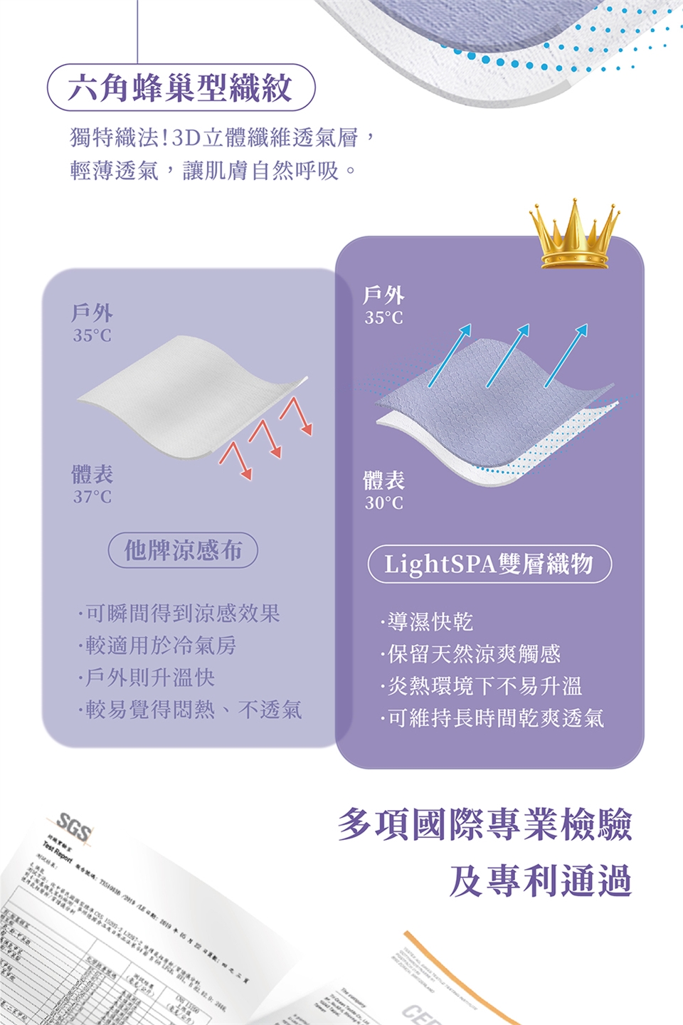 1. 雙層六角蜂巢型織紋,自然折射有益光