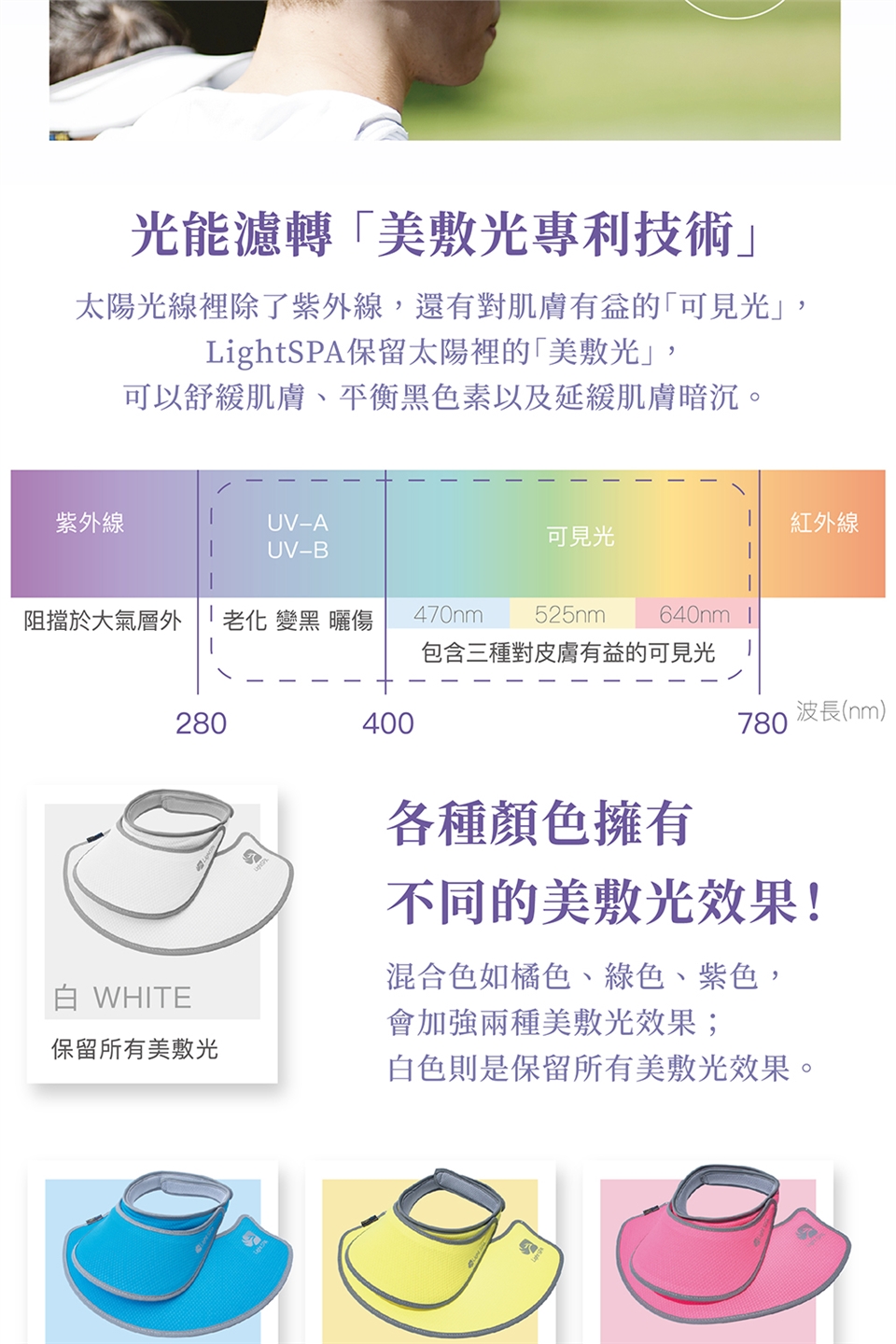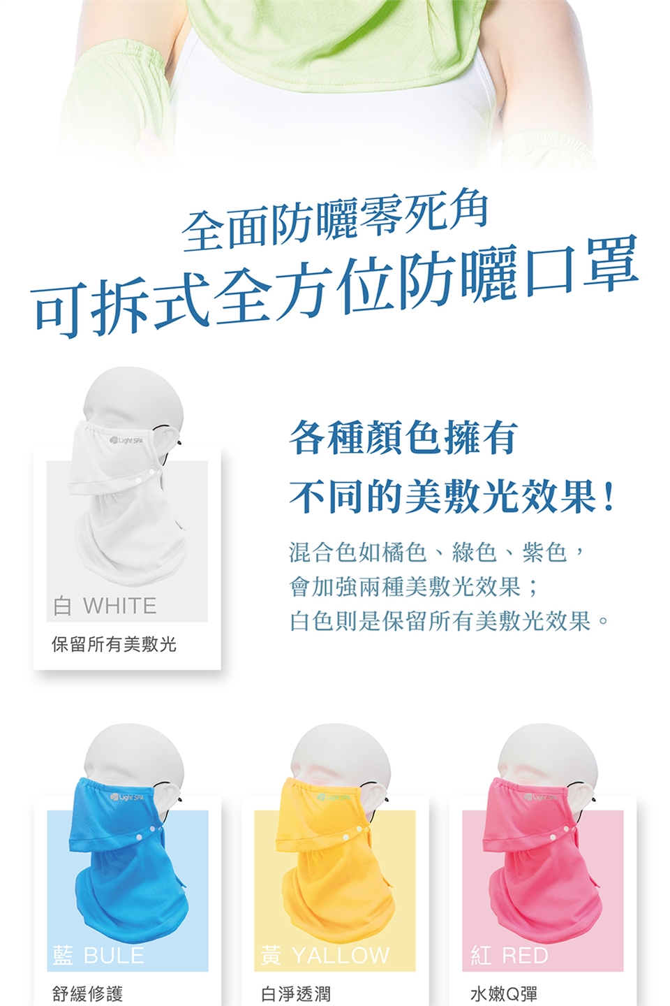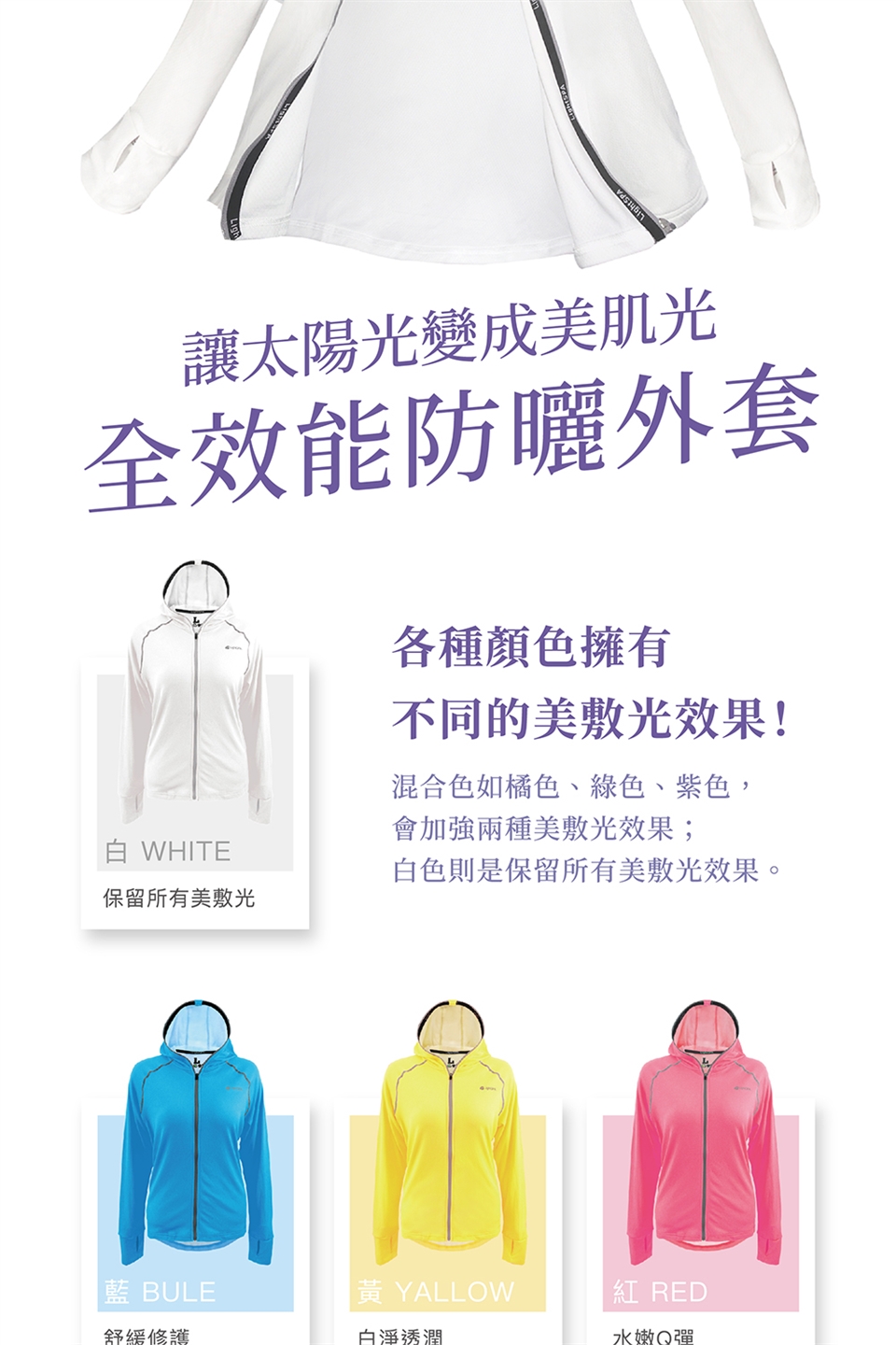 ◆光波衣為特殊環保光學布,需〈螢光色系〉才能有效將太陽光轉有益光穿出淨白美膚