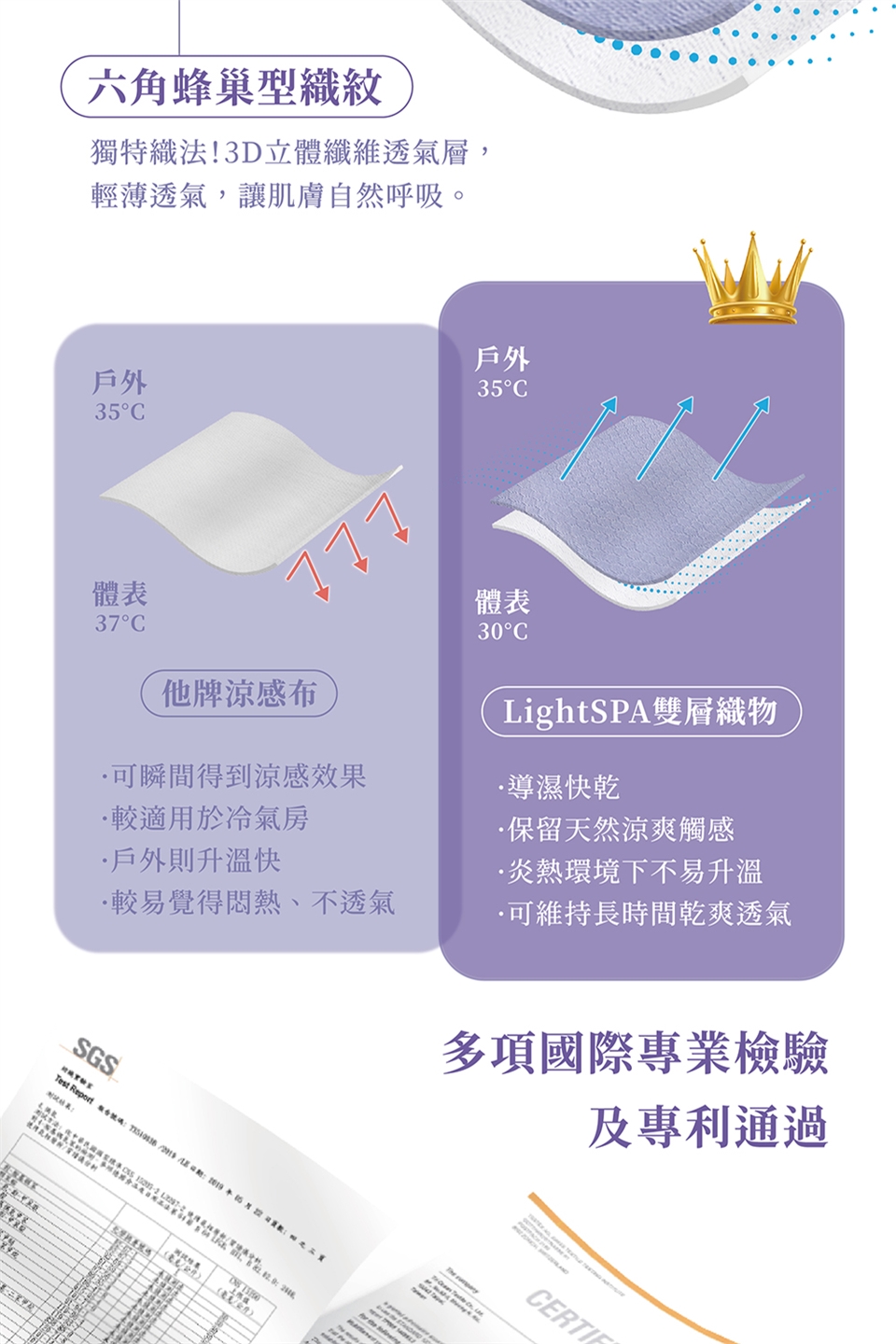 1. 雙層六角蜂巢型織紋,自然折射有益光