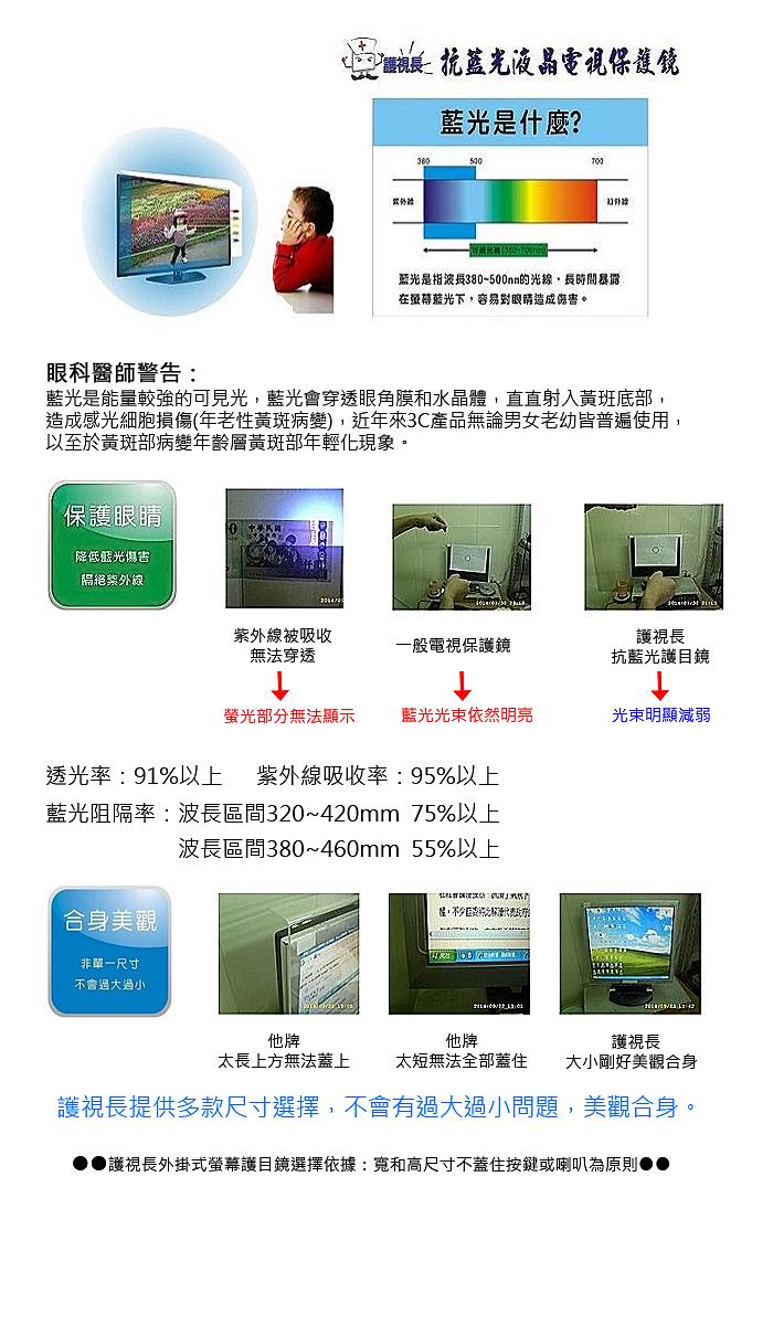 ※請確認自己的液晶螢幕/電視的長寬,尤其是寬的部分~請確認壓克力長度能蓋超過液晶螢幕/電視