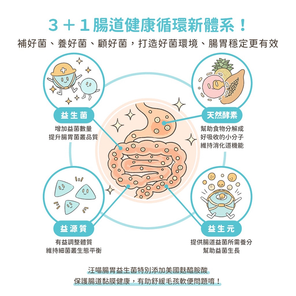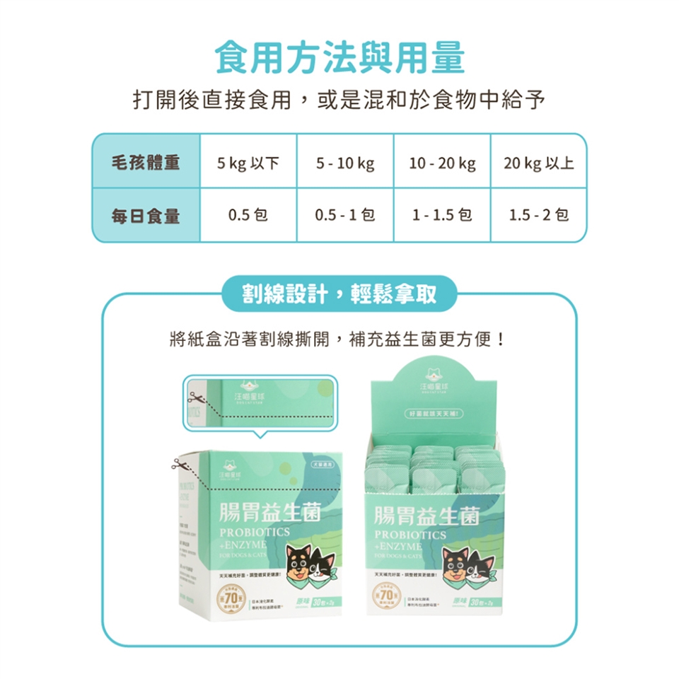 • 犬貓皆適用,幫助腸胃健康、維持抵抗力