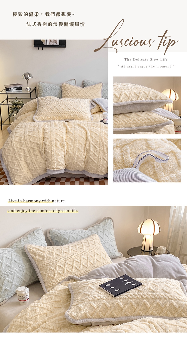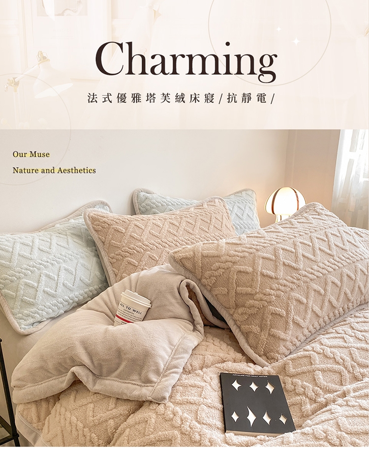 ◎塔芙絨x牛奶絨材質 法式質感床寢