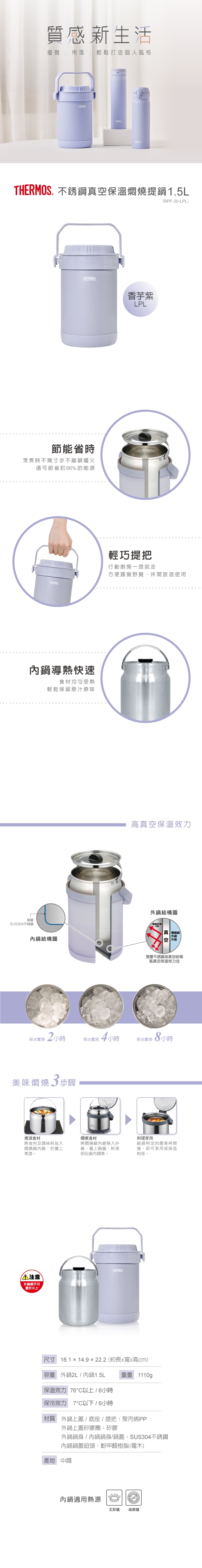 THERMOS膳魔師不鏽鋼真空燜燒提鍋1500ml(RPF-20-LPL)(香芋紫) |