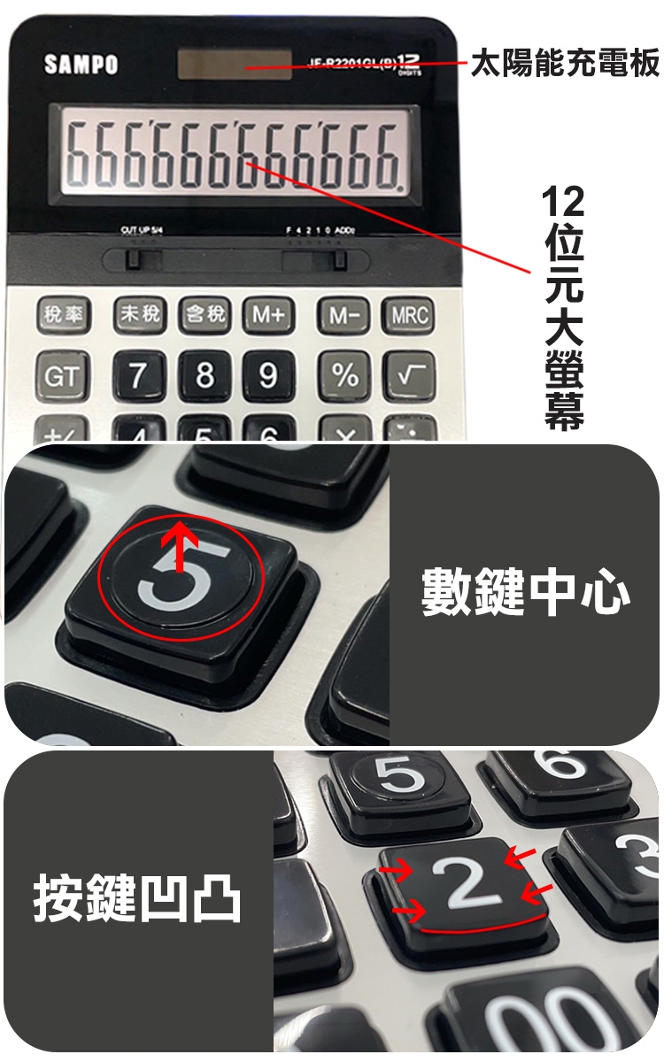 【SAMPO】12位元太陽能電子計算機-大(聲寶 大按鍵計算機 桌上計算機 12位數計算機 大螢幕計算機/JF-R2201GL)