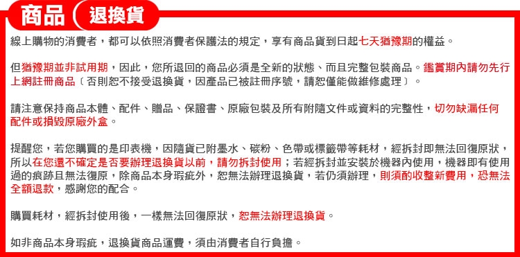 ※辦理退貨商品必須是全新狀態且包裝完整,否則將會影響退貨之權益