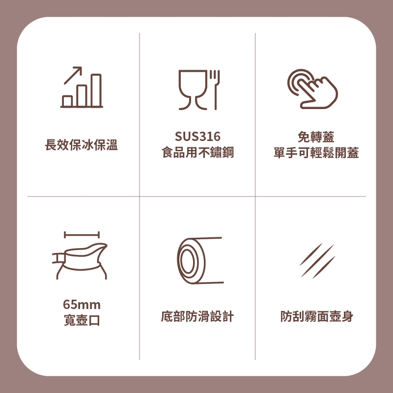 ●請勿放入乾冰、碳酸飲料等,怕造成本體內壓力增加導致飲品噴出。