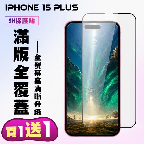 買一送一IPhone 15 PLUS 鋼化膜滿版黑框手機保護膜