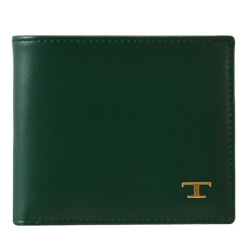 TODS 復古金屬T LOGO小牛皮對開八卡短夾.森林綠