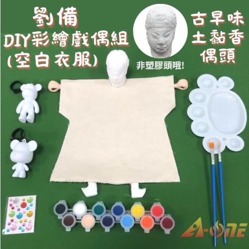劉備DIY彩繪布袋戲偶白衣組土黏香偶頭(含2彩繪流體熊12色顏料2水彩筆調色盤水鑽貼紙)台灣味木偶人偶童玩具布袋戲手偶
