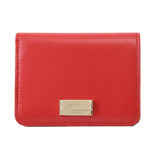 TODS 金屬LOGO滑面牛皮對開釦式短夾.紅