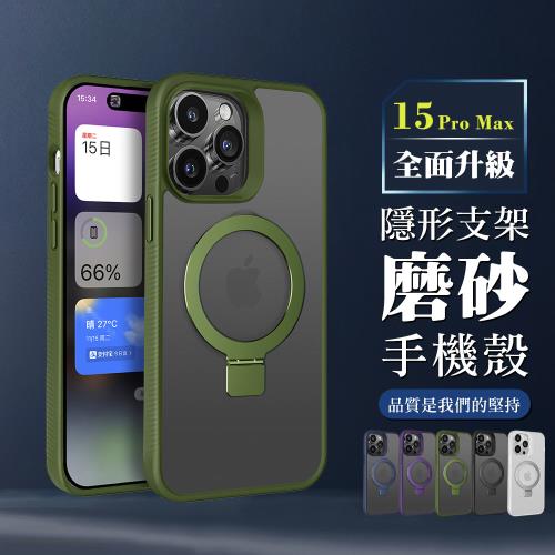 IPhone 15 PRO MAX 6.7吋 可任意調整隱形支架磁吸磨砂殼手機保護殼