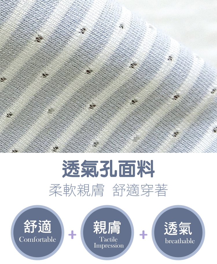 透氣孔面料,柔軟親膚,舒適穿著,透氣不悶熱