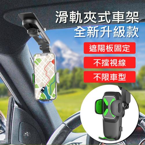 升級款 滑軌夾式車架(自動手機夾) 儀表板/遮陽板導航架 車用手機支架 多功能可調角度手機架