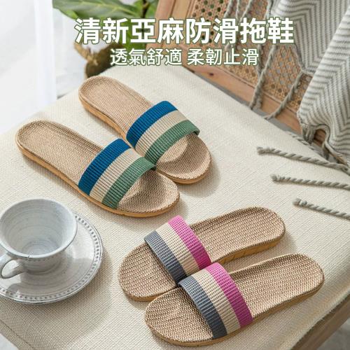 【心靈捕手嚴選】極簡亞麻透氣防滑居家涼拖鞋-寬條紋(室內拖鞋 男女鞋)