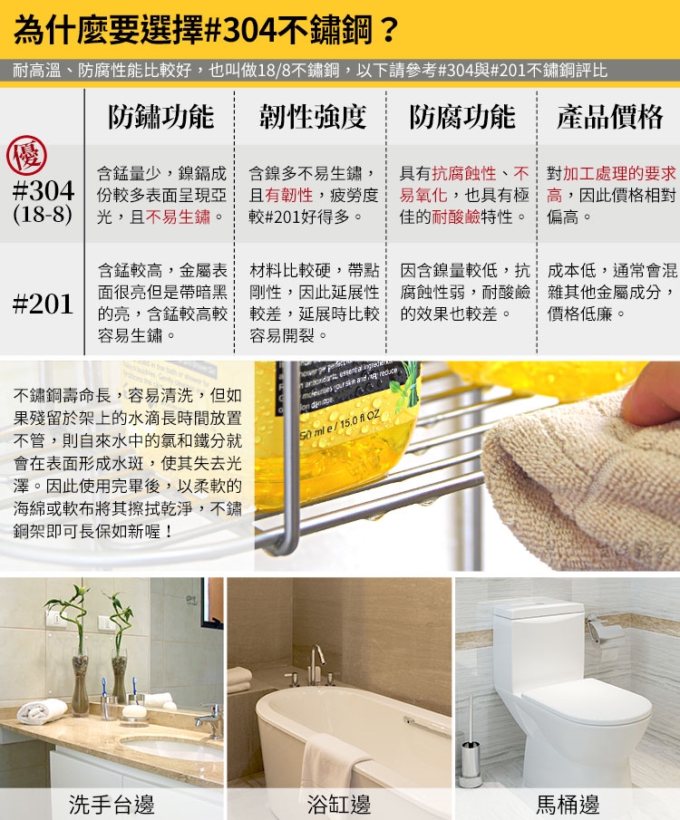※SUS304材質,可抗日曬無遇水生鏽問題,SUS304為同質產品最高規格材料,一般不標示材料序號的坊間產品大多是 以SUS201或較低階不鏽鋼材所生產的唷~