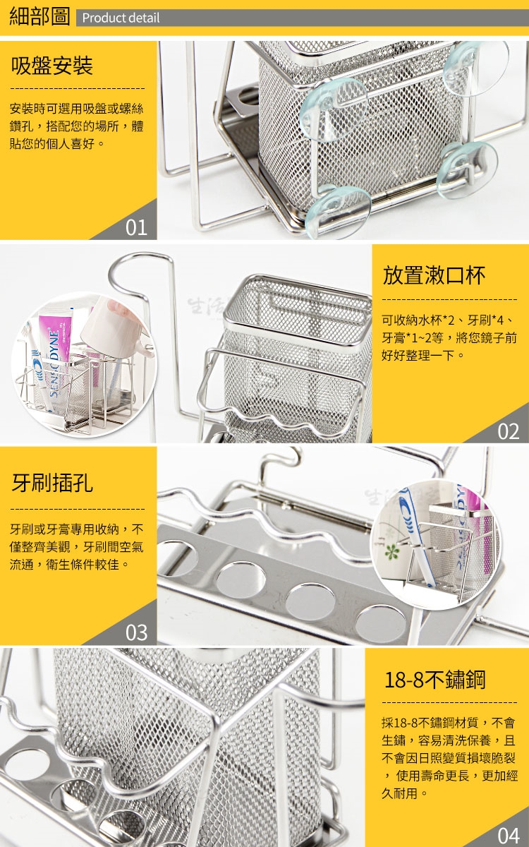 可收納水杯*2、牙刷*4、牙膏*1~2等,將您鏡子前好好整理一下。