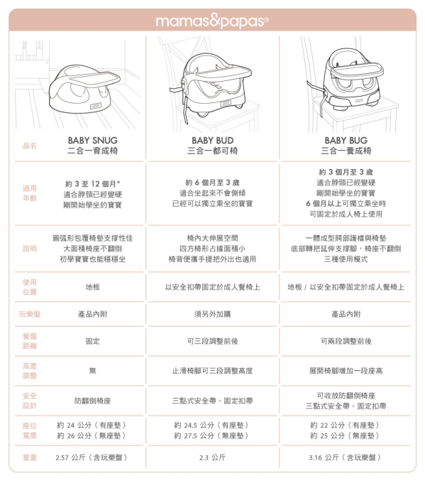 - 椅墊可隨寶寶成長移除,增加乘坐空間