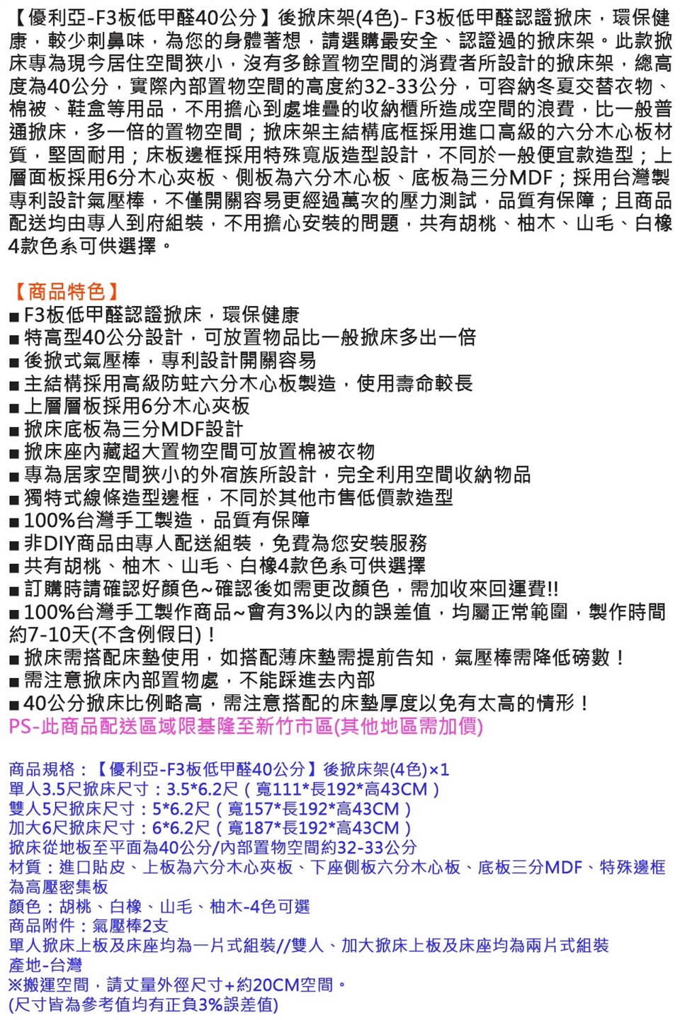 -●大型商品7-10天內到達(例假日除外),如需晚間或假日配送,請於訂單上先行註明以協調配送時間。