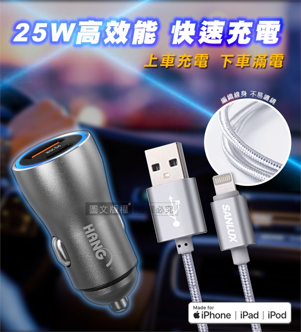 iPhone傳輸充電線(100cm)+USB/TYPE-C雙孔車充頭