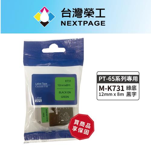 台灣榮工 BROTHER 相容標籤帶M-K731(綠底黑字12mm)適用PT-65專用系列標籤機