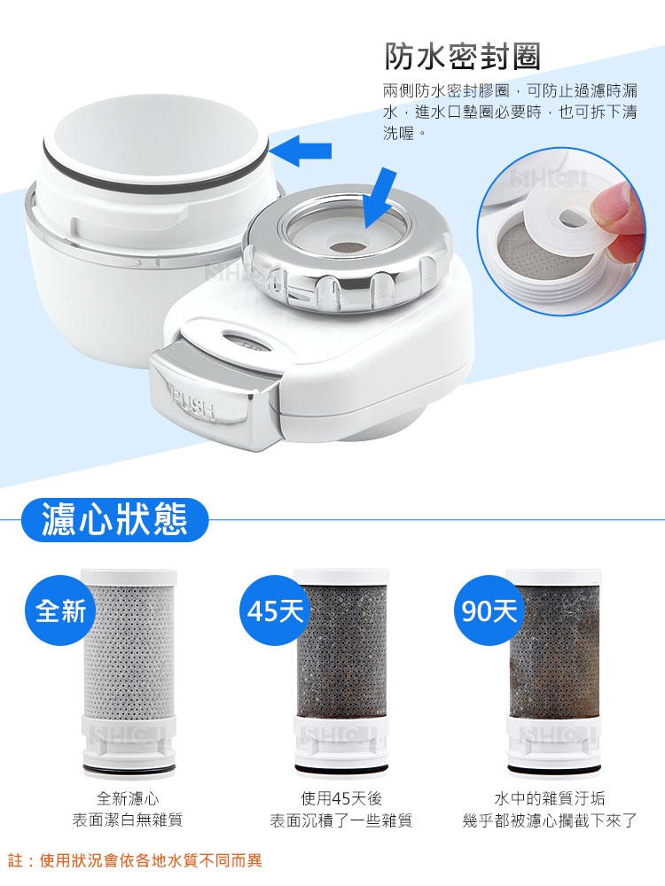5.不同地區因水質軟硬度、餘氯或懸淨物質含量及日常用水量不同,使用時間會有差異。