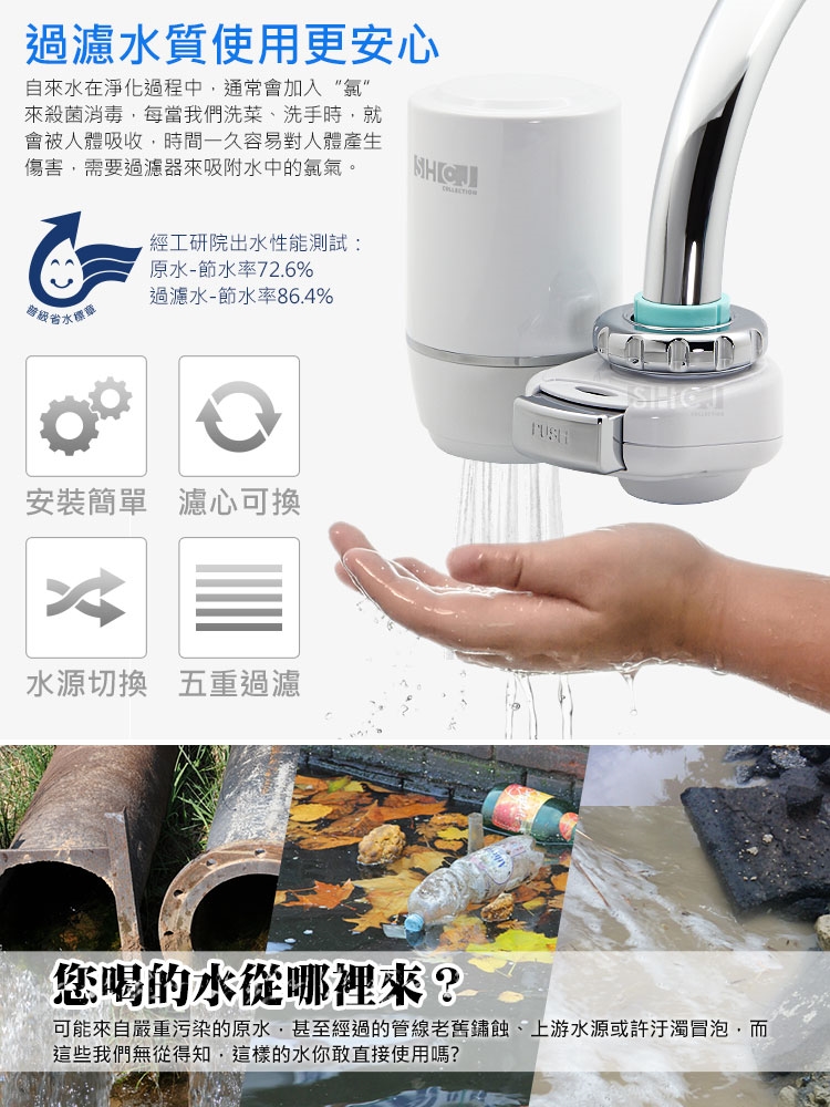 ◆日常洗菜、肉類、海鮮或洗手、洗臉、刷牙、漱口等,都可過濾不良物質,可安心使用。