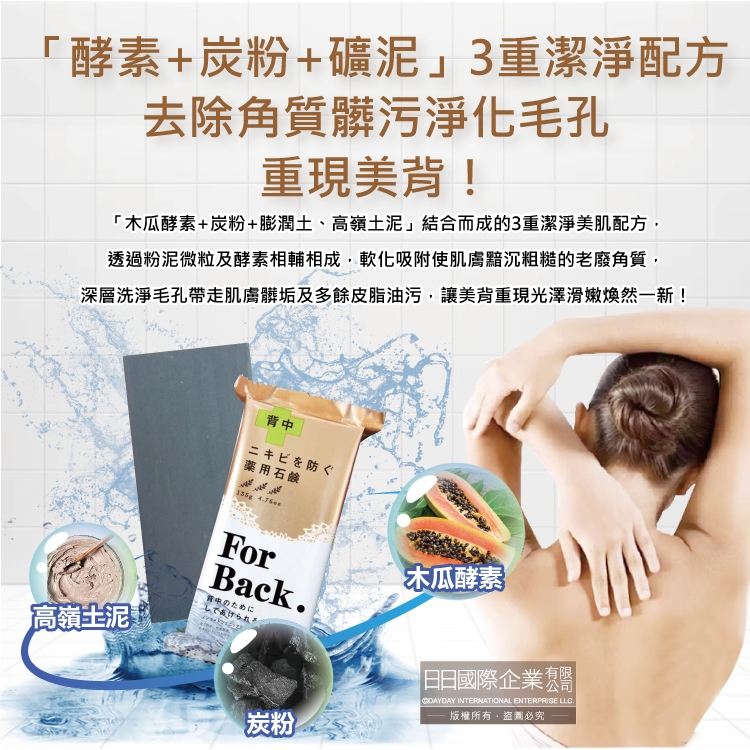 ●品名:For Back背部美肌專用酵素炭泥保濕潔膚皂