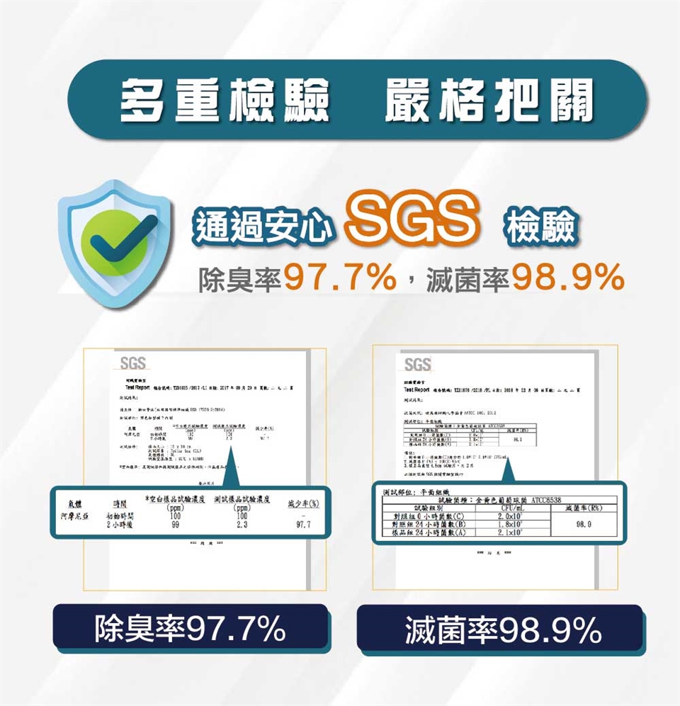 ⛰SGS檢驗實證:有效除臭抑菌