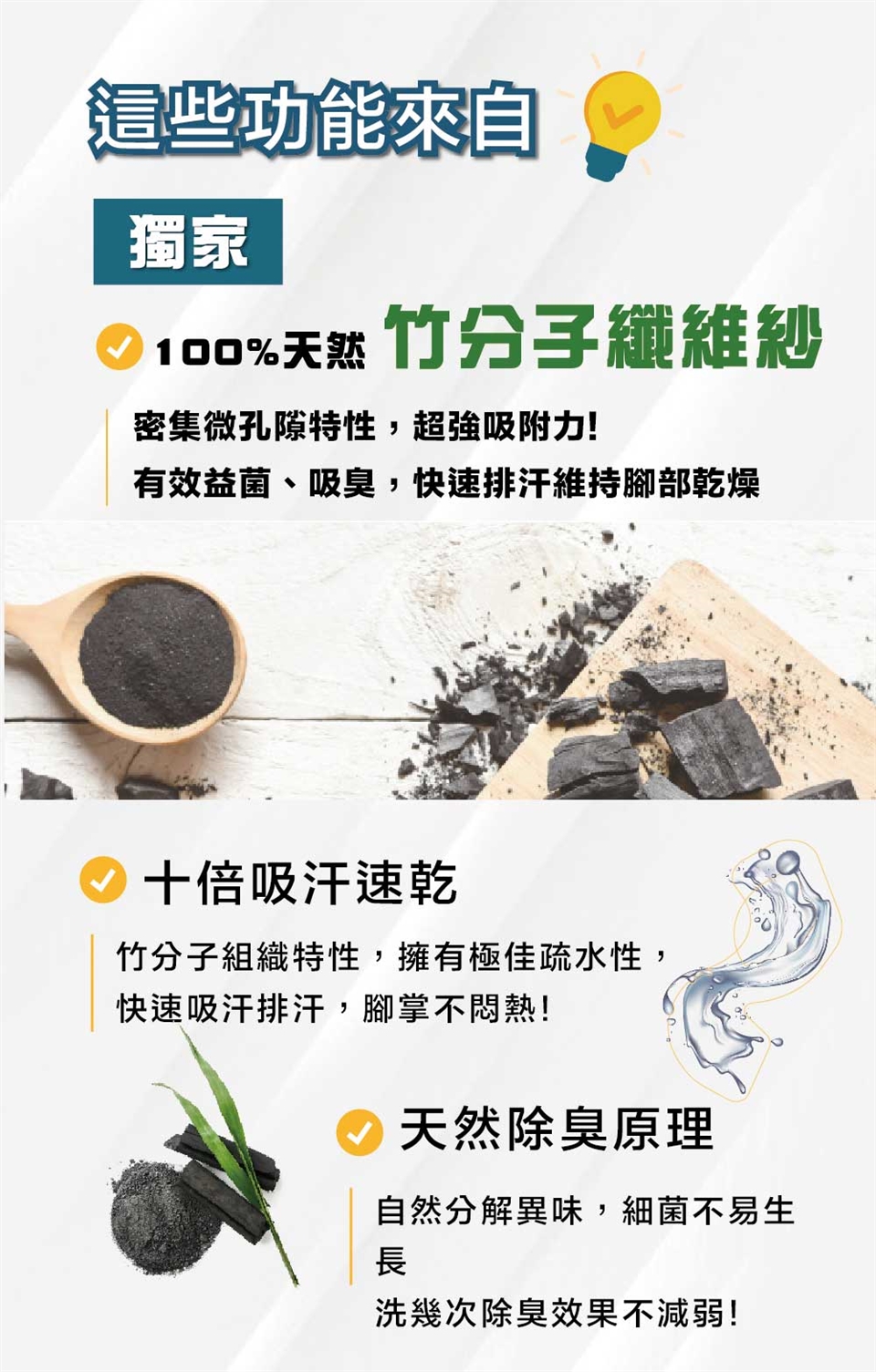 ⛰天然100%竹分子纖維材質:透氣吸汗