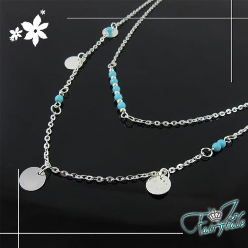 【伊飾童話】翠綠串珠 雙層圓幣墬鍊 顏色可選
