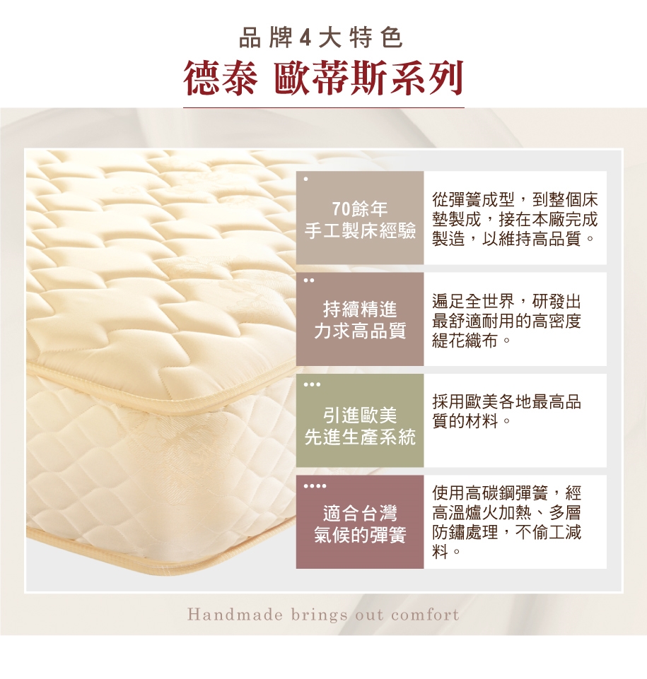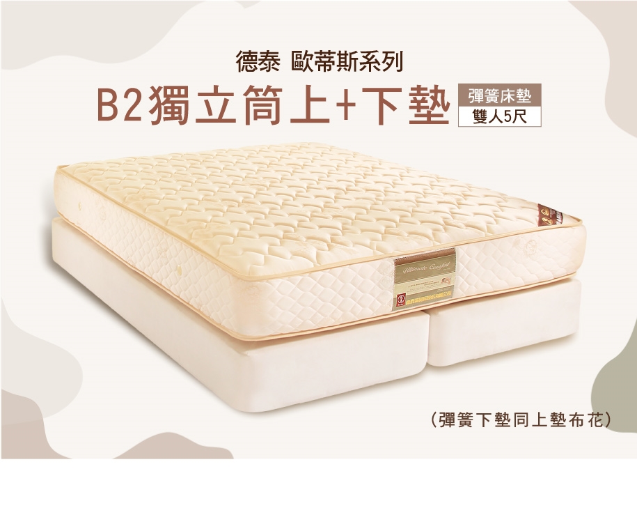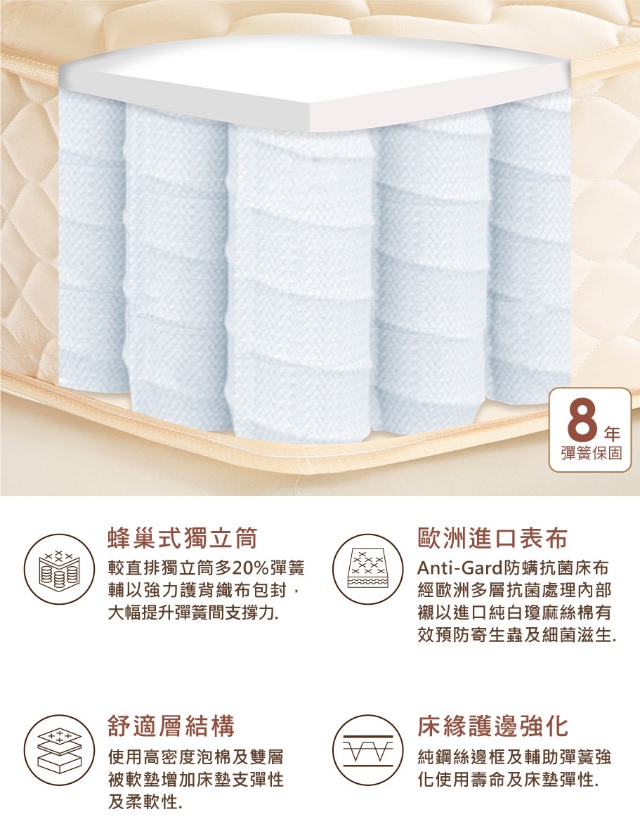 每台螢幕顯色不甚相同,您所看到的影像顏色可能與實體顏色略有差異。販售商品為上床墊,商品圖片其餘內容(床架、床頭片及其他擺飾品)僅供參考。