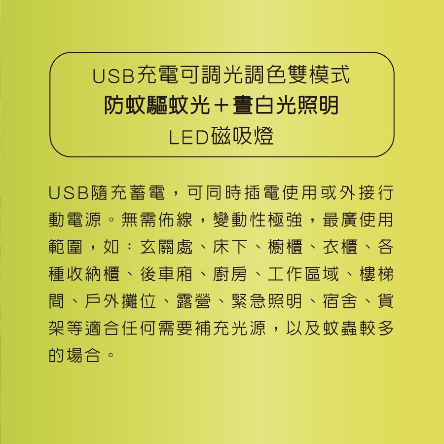 ●本燈具為防蚊驅蚊光,及白光照明雙模式可調光LED燈。