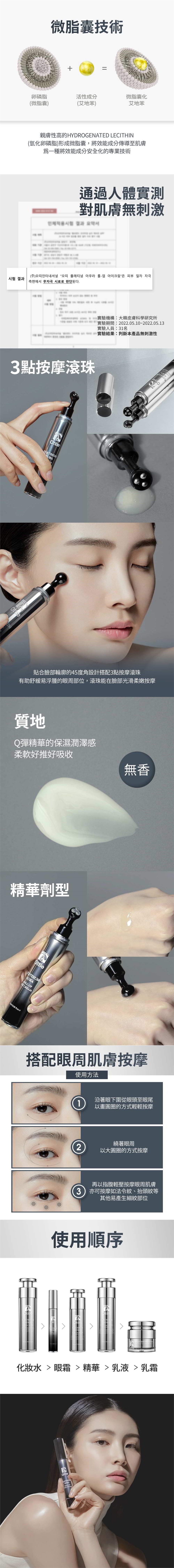 用法:早晚保養時,擦完化妝水後使用。按壓讓眼部精華從滾珠處擠出。