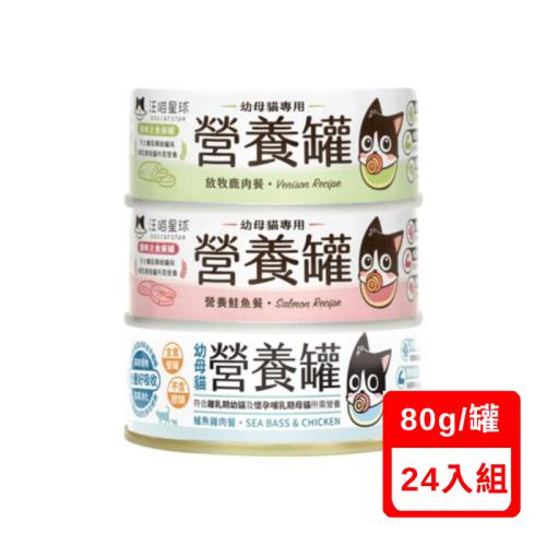 DOG CATSTAR汪喵星球幼母貓營養主食罐(98%含肉量) (營養鮭魚餐/放牧鹿肉餐) 80g X(24入組)(下標數量2+贈神仙磚)