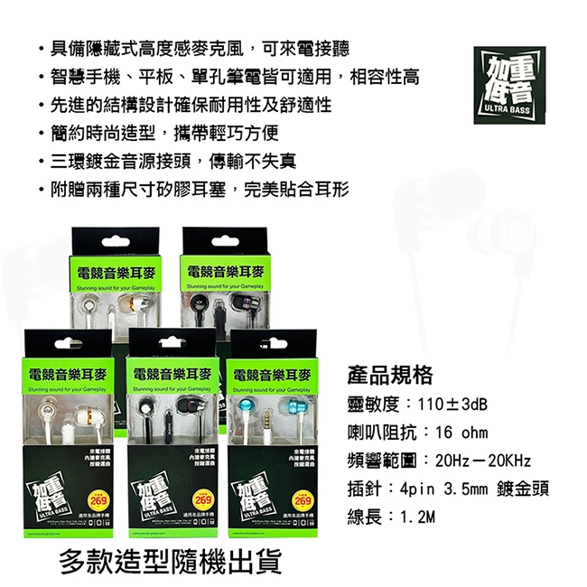 Kworld 廣寰 KW-SS11入耳式電競音樂耳麥 x3 (隨機)