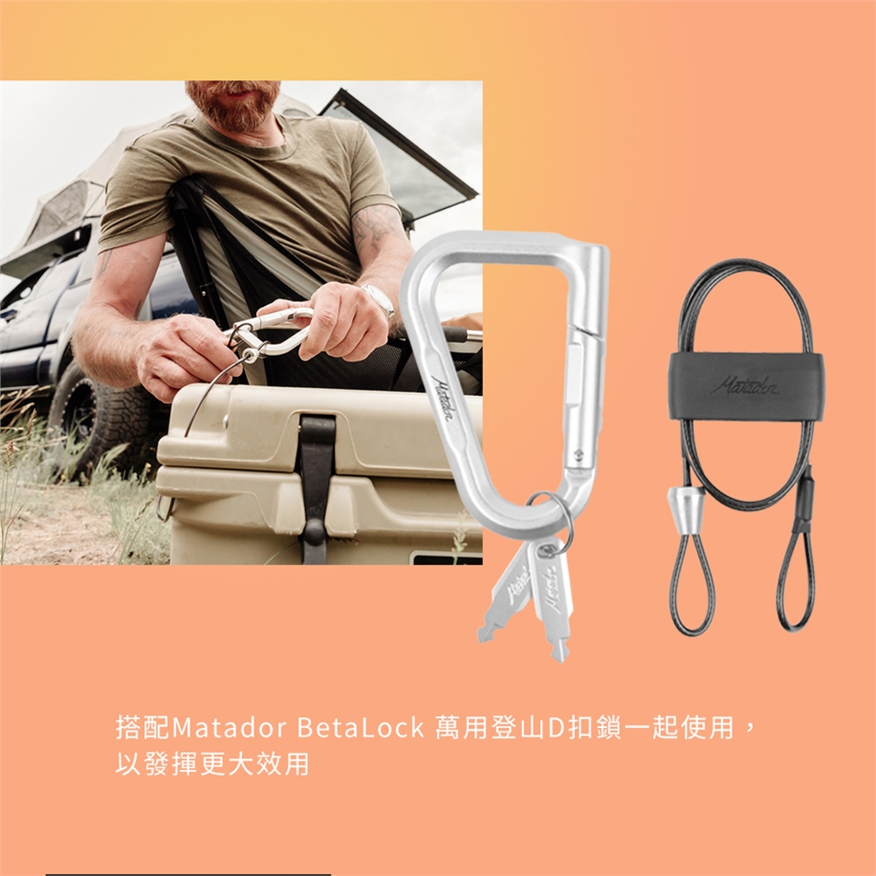 *本賣場不包含Matador BetaLock 萬用登山D扣 *請勿用於攀爬或懸掛重物或危險負載。 BetaLockTM 不適合用作承重裝置。