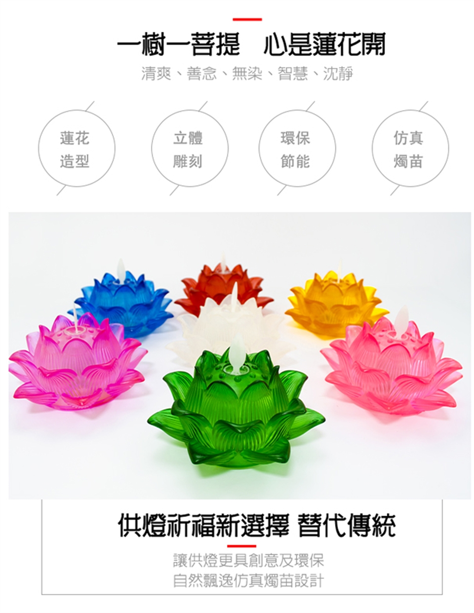 1.蓮華心燈共有七種顏色可選擇,每組產品的飄飄燭皆為相同之顏色。