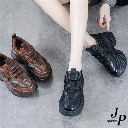 JP Queen New York 復古老爹內加絨雙層牛皮厚底運動鞋(2色可選)