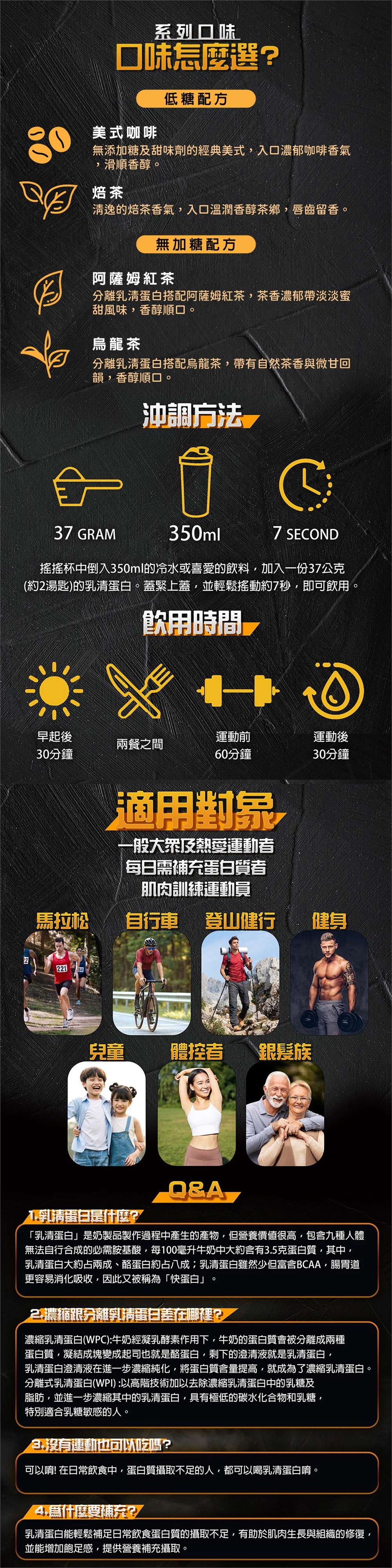 乳清(37g)加入200-350cc冷水或喜愛的飲料,輕鬆搖動20秒混合後即可飲用,一般杯子用湯匙攪拌均勻即可。