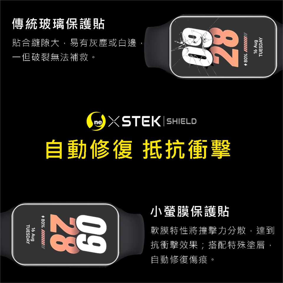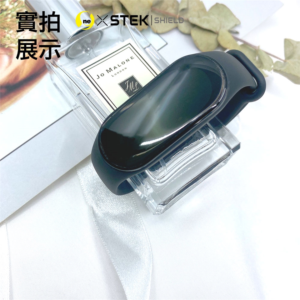 先以酒精棉片清潔螢幕,再用擦拭布擦乾,最後用除塵貼黏起灰塵;待孔位正確,黏合固定住,用刮板將膜撫平,小心撕除最上層表面離型膜,並撫平四周貼合