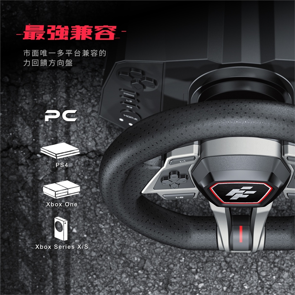 可使用於XBOX、PC及PS4各大平台,皆有支援力回饋(遊戲必須支援),相較於一般震動,力回饋提供更真實的操作體驗,讓玩家感到類似實際駕駛的顛簸感。
