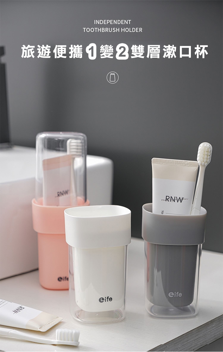 外出旅遊時還在煩惱洗漱用品要如何攜帶嗎?夾鏈袋牙膏容易被擠壓,一次性牙刷不環保也不衛生。快來試試~旅遊便攜一變二雙層漱口杯,可輕鬆收納牙刷、牙膏、梳子等隨身物品。大容量雙倍設計,打開即可做兩個漱口杯使用,小巧輕便, 出遊無負擔,攜帶外出 便利有品味!
