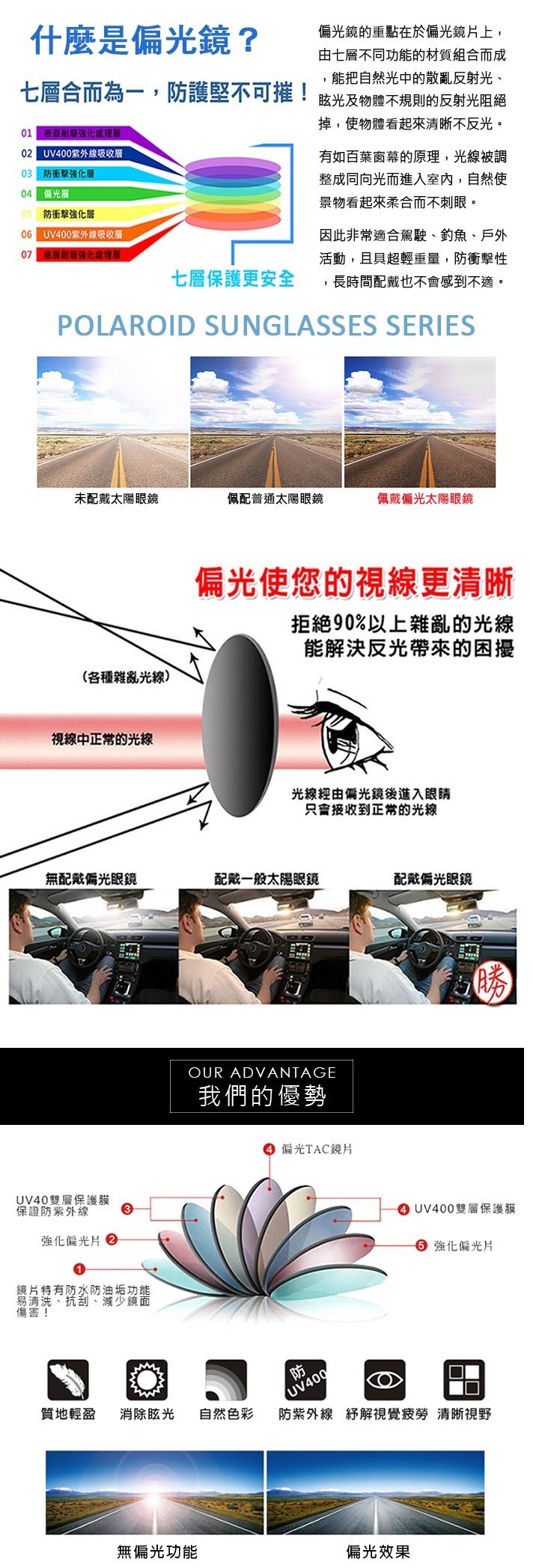 ◆ 偏光鏡片 防眩光反光折射光等 視野更清晰