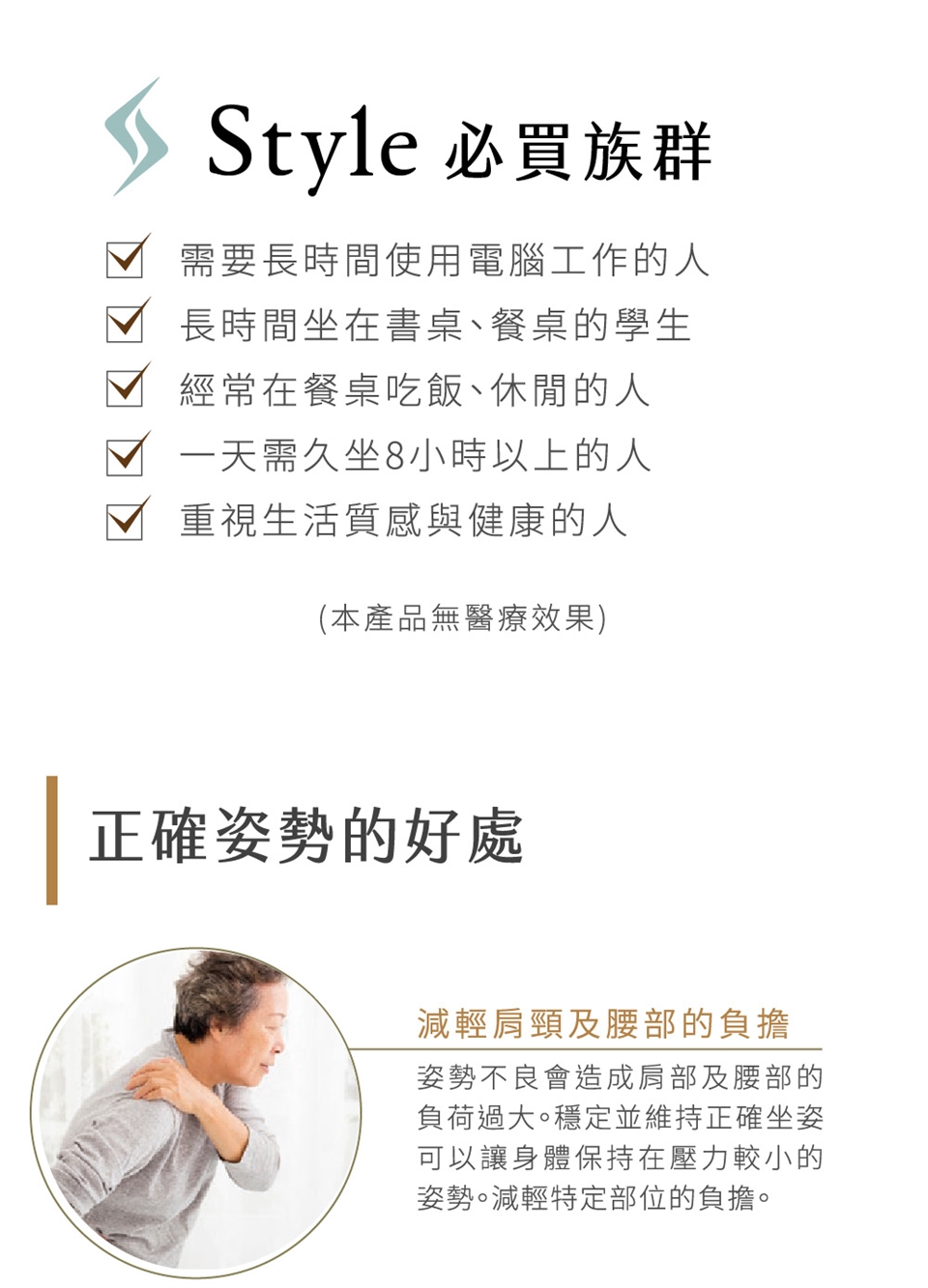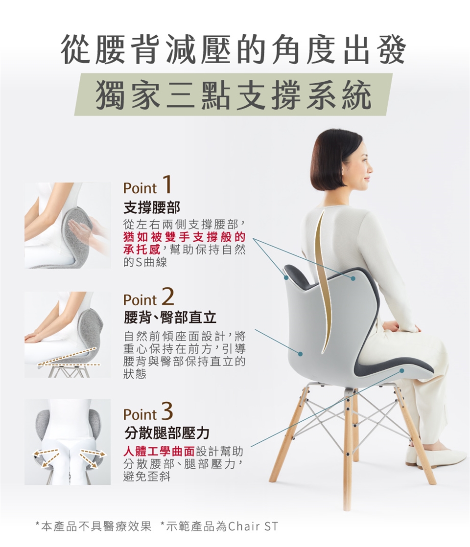 ■ 獨家三點支撐技術,輕鬆維持S型姿勢