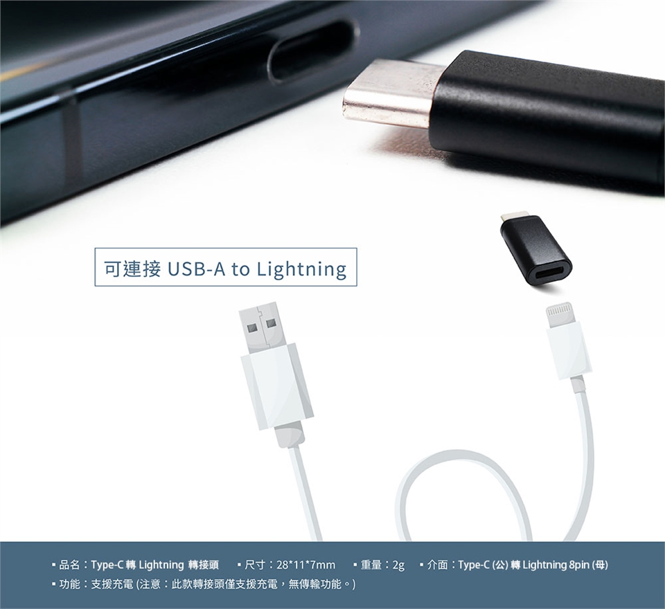 注意:此款轉接頭僅支援充電,無傳輸功能。