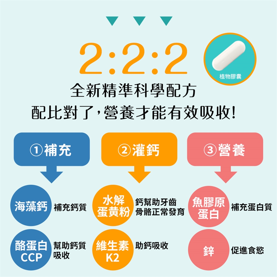 ⭐添加衛褔部核准的「幫助牙齒骨骼正常發育」的保健成分