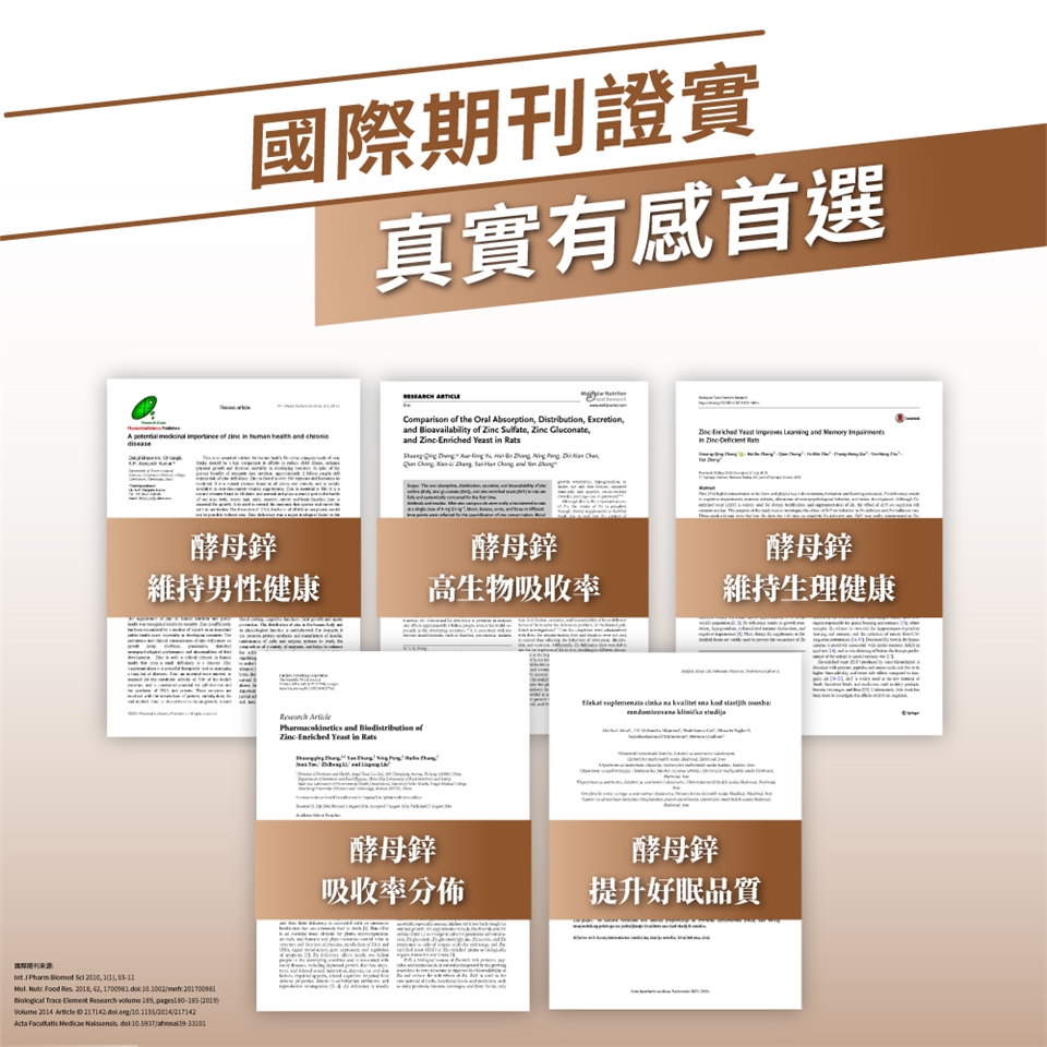 2. 國際文獻證實:證實有助維持生長發育與生殖機能、增進皮膚健康、維持男性生理健康、有助代謝增強保護。